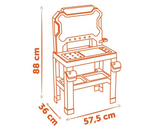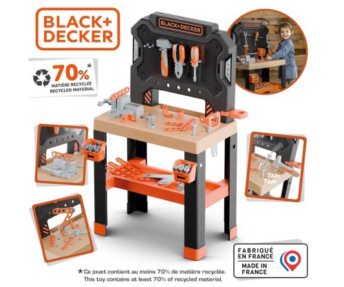 הכניסה המושלמת לעולם המלאכה: שולחן העבודה Black+Decker של Smoby מאפשר לילדים מגיל 3 ומעלה לגלות את הקסם של עבודת ידיים אמיתית, וכל זה דרך משחק יצירתי, מציאותי ומעורר דמיון.