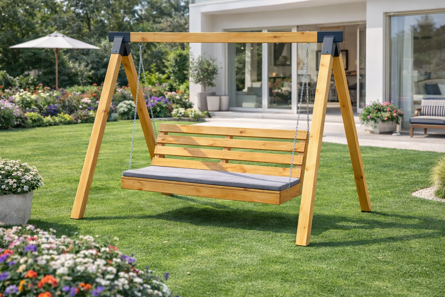 Sherwood הוא דגם שמביא לגינה נוכחות חמה וטבעית, עץ בגוון קלאסי וקווים נקיים . זו לא עוד נדנדה, זה רהיט חוץ מרכזי שמזמין לעצור לרגע, להירגע, וליהנות מהבית באמת.