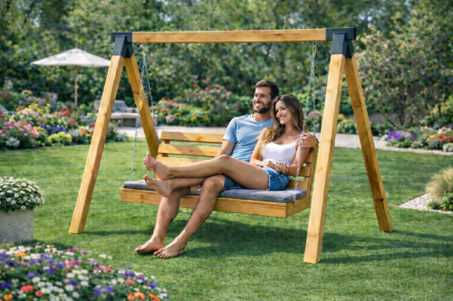 בניגוד לנדנדות רבות שמגיעות כעץ טבעי ודורשות צביעה והתעסקות, Sherwood מגיעה צבועה בגימור איכותי ומוכנה להצבה בגינה.