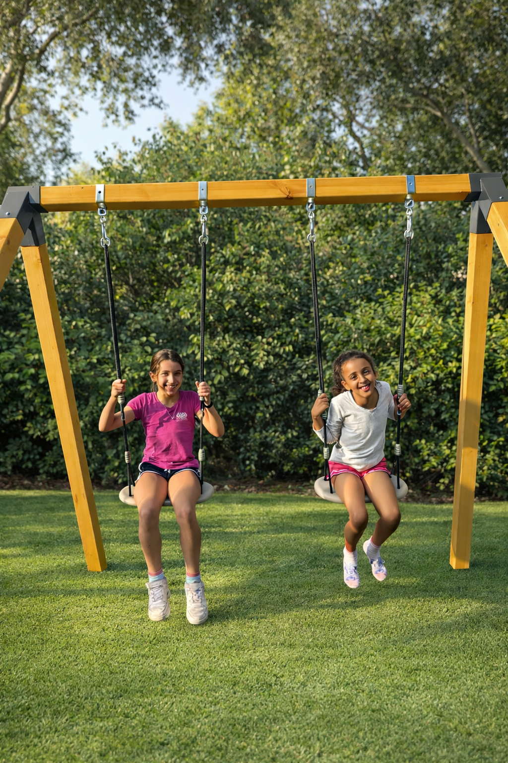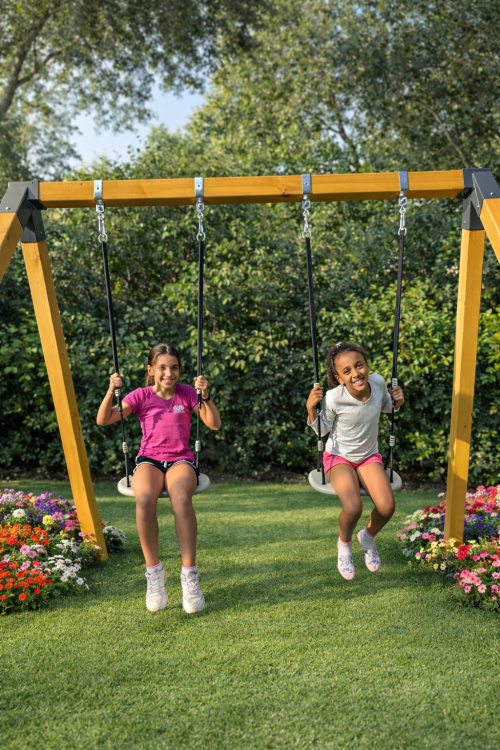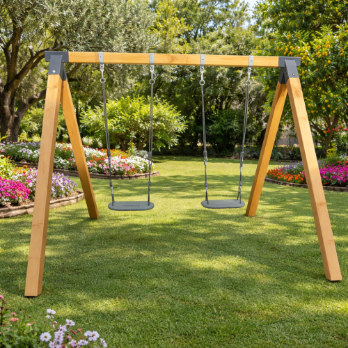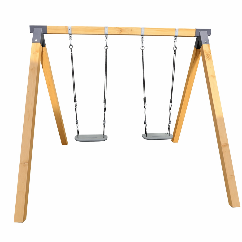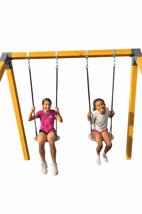 נדנדת העץ הקלאסית בנויה מקורות עץ גושני איכותי בגימור צבע עץ אלון, חזקה ומרשימה, ומיועדת לשנים של פעילות מהנה בחוץ. זהו מתקן יציב, מאסיבי ובטיחותי שמייצר רגעים של שמחה אמיתית — לילדים, ולכל המשפחה.