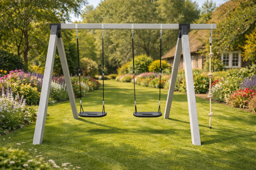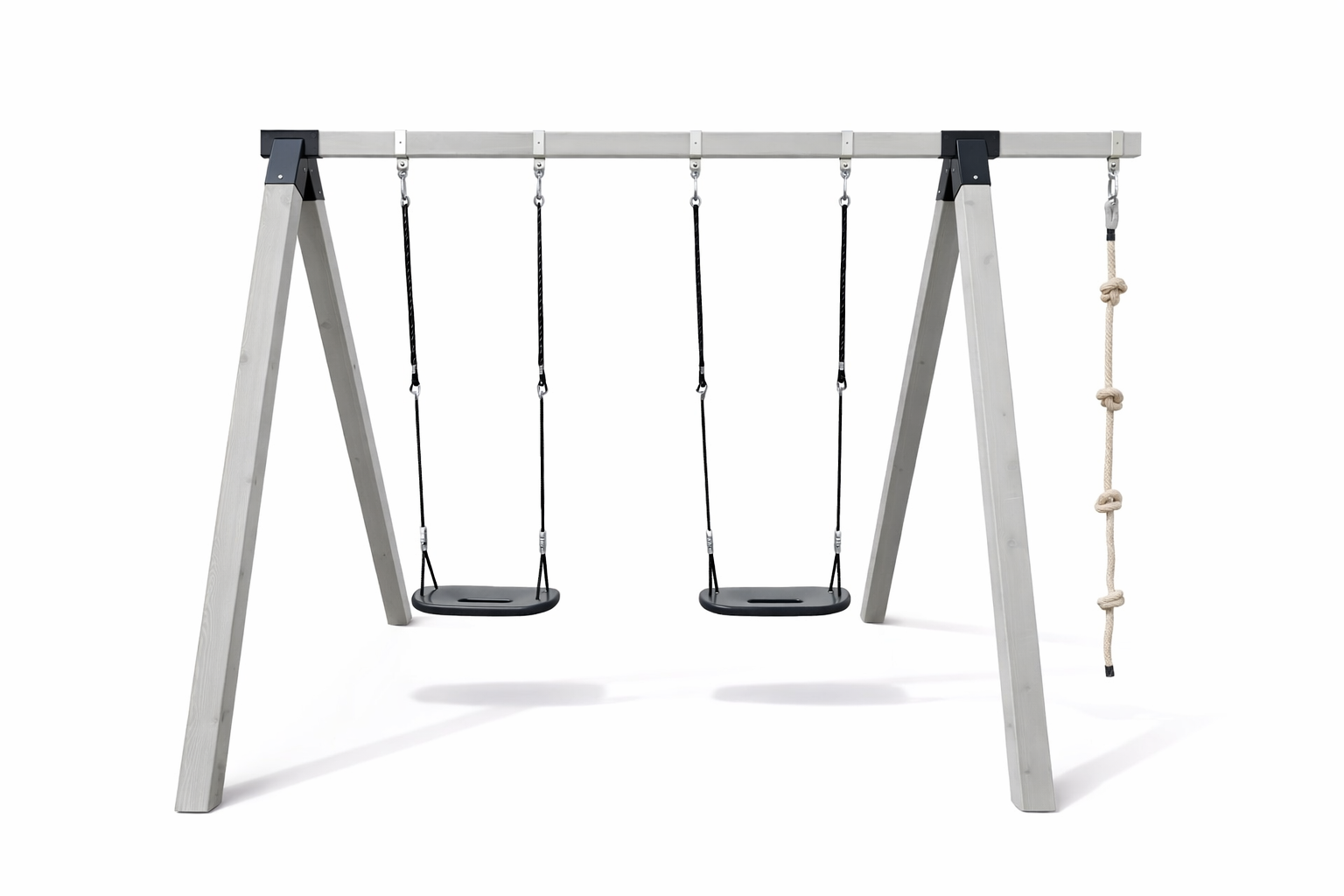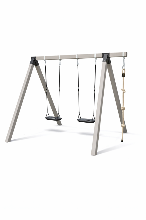 נדנדת עץ גושני גבוהה לילדים דגם גרפיט כוללת 2 מושבים וחבל טיפוס