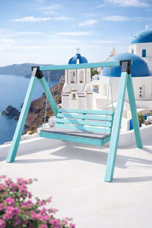 דגם סנטוריני נולד בהשראת חופשה ים-תיכונית — קווים נקיים, צבע חי ומרענן, ומסיביות שמרגישים בכל פרט. זו לא עוד נדנדה, אלא רהיט חוץ מרכזי שמזמין לעצור לרגע, להירגע וליהנות מהבית באמת.
