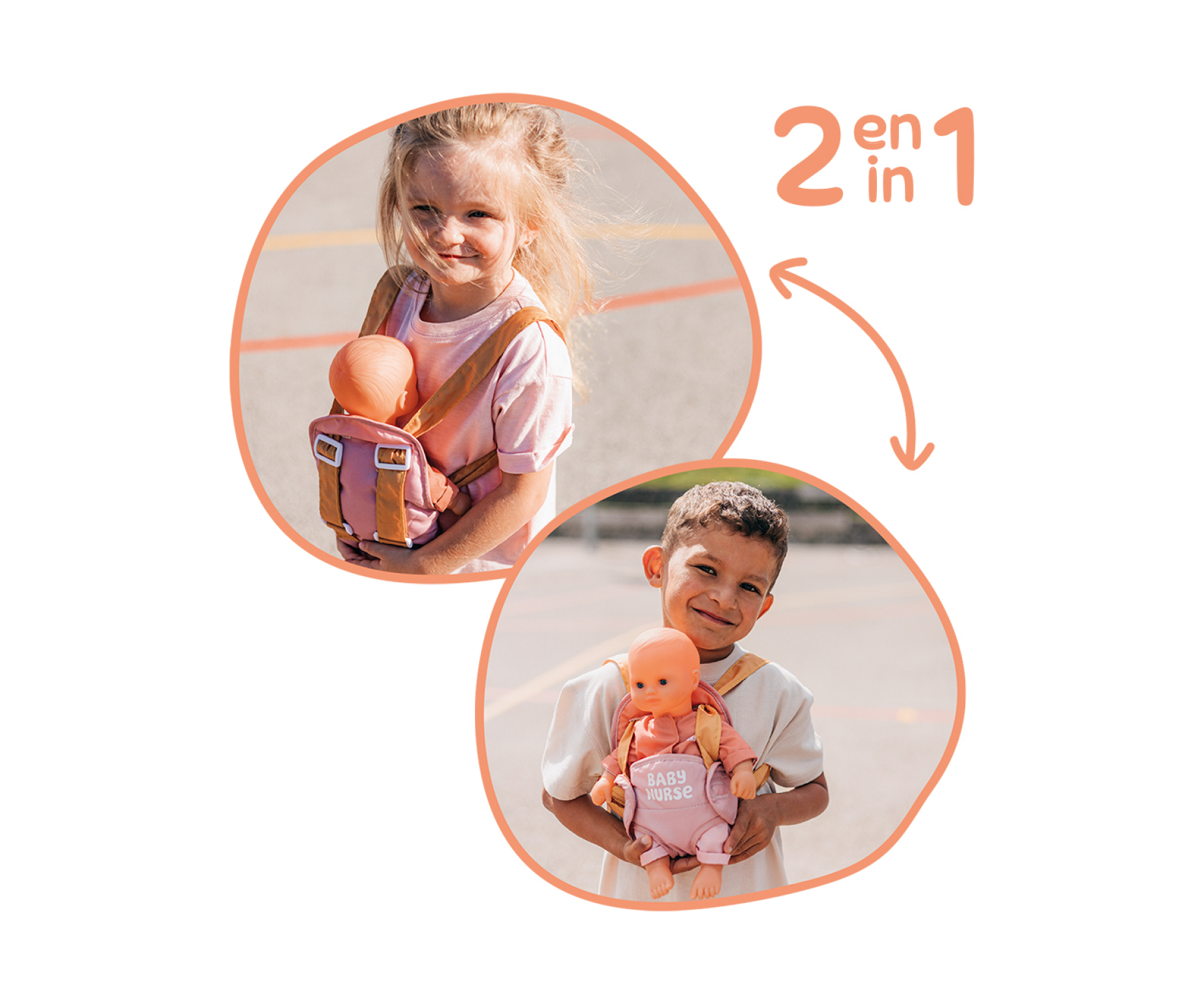 מנשא הבובות של Smoby מאפשר לילדים לשאת את הבובה מולם או כלפי חוץ, בהתאם להעדפתם. המעבר בין המצבים מהיר ונוח, תוך שמירה על תמיכה יציבה לבובה בכל תנוחה.