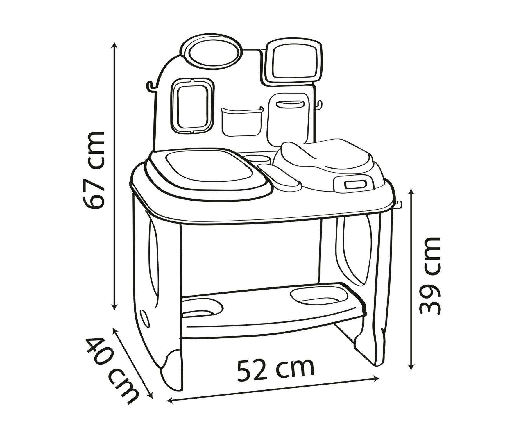 מרכז המשחק Baby Care Centre של Smoby מאפשר לילדים להפוך ל“רופאים” של הבובה שלהם. העמדה משלבת מגוון אזורי טיפול בצבעי פסטל עדינים ומזמינים.